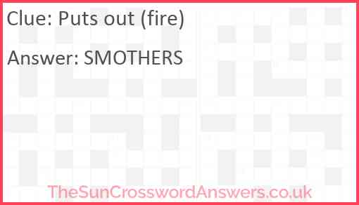 Puts out (fire) is a crossword clue for which we have 1 possible answer and we have spotted 2 times in our database. This crossword clue was last seen on 22 May 2024 in The Sun Coffee Time Crossword puzzle!