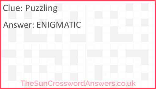 Puzzling is a crossword clue for which we have 1 possible answer and we have spotted 4 times in our database. This crossword clue was last seen on 19 April 2024 in The Sun Coffee Time Crossword puzzle!