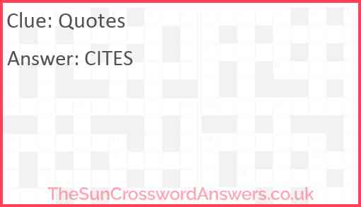 Quotes is a crossword clue for which we have 1 possible answer and we have spotted 2 times in our database. This crossword clue was last seen on 12 October 2023 in The Sun Coffee Time Crossword puzzle!