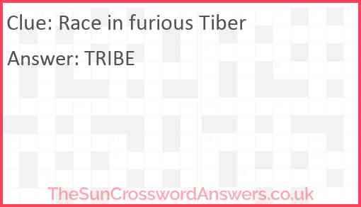 Race in furious Tiber is a crossword clue for which we have 1 possible answer and we have spotted 1 times in our database. This crossword clue was last seen on 29 March 2024 in The Sun Cryptic Crossword puzzle!