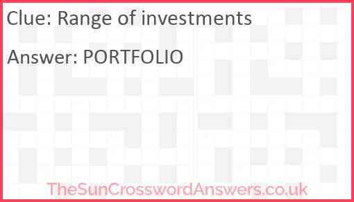 Range of investments is a crossword clue for which we have 1 possible answer and we have spotted 1 times in our database. This crossword clue was last seen on 18 July 2021 in The Sun Coffee Time Crossword puzzle!
