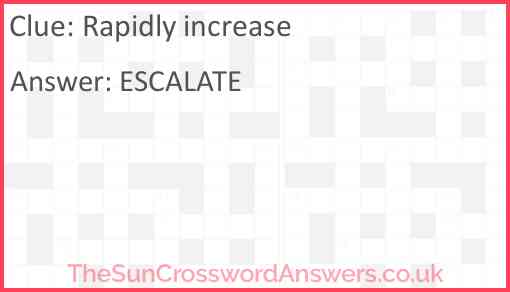 Rapidly increase is a crossword clue for which we have 1 possible answer and we have spotted 4 times in our database. This crossword clue was last seen on 19 January 2024 in The Sun Coffee Time Crossword puzzle!