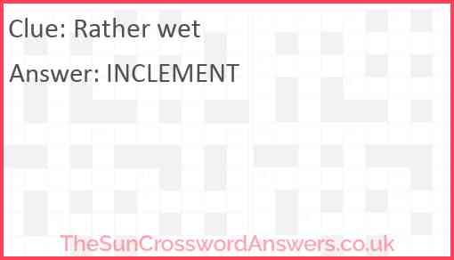 Rather wet is a crossword clue for which we have 1 possible answer and we have spotted 1 times in our database. This crossword clue was last seen on 27 February 2025 in The Sun Coffee Time Crossword puzzle!