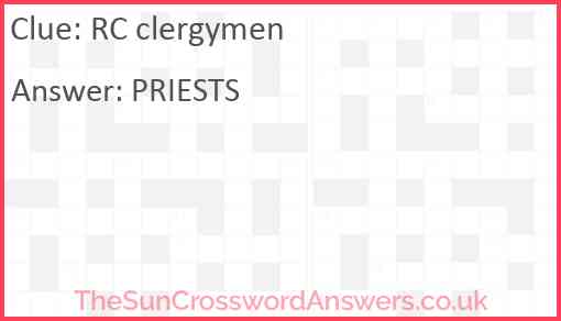 RC clergymen is a crossword clue for which we have 1 possible answer and we have spotted 1 times in our database. This crossword clue was last seen on 04 January 2024 in The Sun Coffee Time Crossword puzzle!