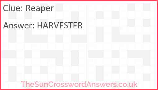 Reaper is a crossword clue for which we have 1 possible answer and we have spotted 1 times in our database. This crossword clue was last seen on 05 January 2023 in The Sun Coffee Time Crossword puzzle!