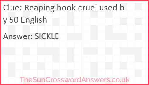 Reaping hook cruel used by 50 English is a crossword clue for which we have 1 possible answer and we have spotted 2 times in our database. This crossword clue was last seen on 02 August 2022 in The Sun Cryptic Crossword puzzle!