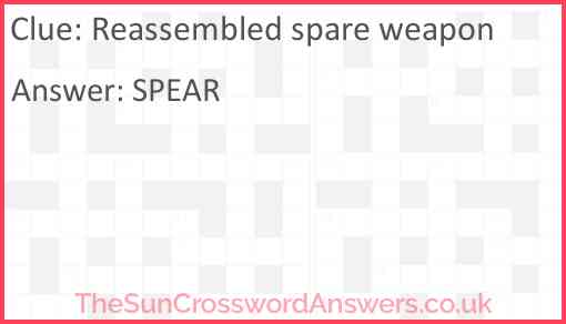 Reassembled spare weapon is a crossword clue for which we have 1 possible answer and we have spotted 3 times in our database. This crossword clue was last seen on 03 July 2022 in The Sun Cryptic Crossword puzzle!