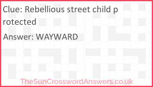 Rebellious street child protected is a crossword clue for which we have 1 possible answer and we have spotted 3 times in our database. This crossword clue was last seen on 31 March 2024 in The Sun Cryptic Crossword puzzle!