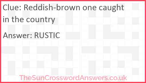 Reddish-brown one caught in the country is a crossword clue for which we have 1 possible answer and we have spotted 2 times in our database. This crossword clue was last seen on 10 June 2023 in The Sun Cryptic Crossword puzzle!