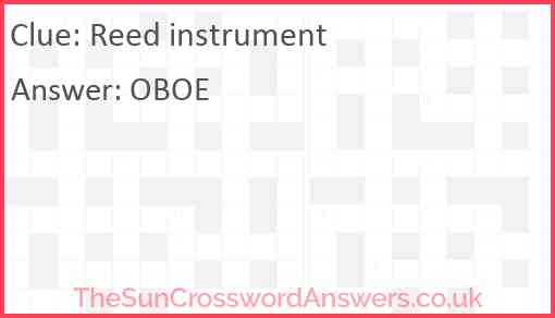 Reed instrument is a crossword clue for which we have 1 possible answer and we have spotted 13 times in our database. This crossword clue was last seen on 30 November 2024 in The Sun Coffee Time Crossword puzzle!