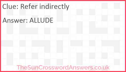 Refer indirectly is a crossword clue for which we have 1 possible answer and we have spotted 2 times in our database. This crossword clue was last seen on 21 December 2023 in The Sun Coffee Time Crossword puzzle!