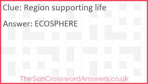 Region supporting life is a crossword clue for which we have 1 possible answer and we have spotted 2 times in our database. This crossword clue was last seen on 03 August 2023 in The Sun Coffee Time Crossword puzzle!