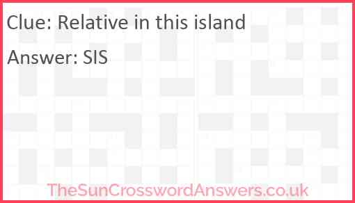 Relative in this island is a crossword clue for which we have 1 possible answer and we have spotted 3 times in our database. This crossword clue was last seen on 22 November 2024 in The Sun Cryptic Crossword puzzle!
