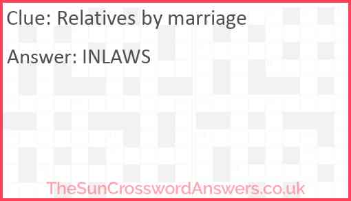Relatives by marriage is a crossword clue for which we have 1 possible answer and we have spotted 1 times in our database. This crossword clue was last seen on 02 July 2023 in The Sun Coffee Time Crossword puzzle!