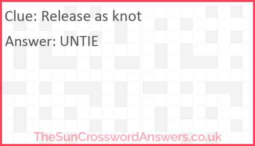 Release as knot is a crossword clue for which we have 1 possible answer and we have spotted 2 times in our database. This crossword clue was last seen on 28 June 2021 in The Sun Coffee Time Crossword puzzle!