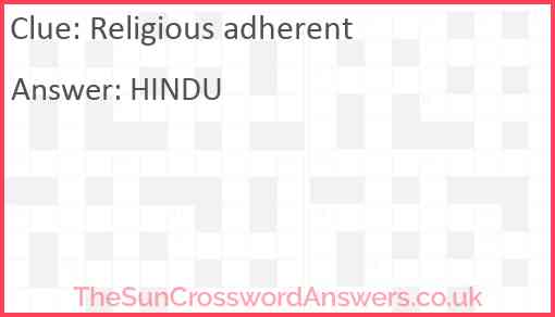 Religious adherent is a crossword clue for which we have 1 possible answer and we have spotted 7 times in our database. This crossword clue was last seen on 08 January 2024 in The Sun Coffee Time Crossword puzzle!