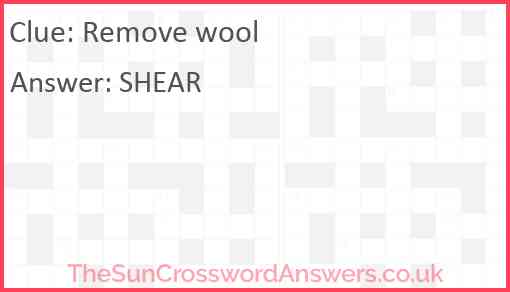 Remove wool is a crossword clue for which we have 1 possible answer and we have spotted 2 times in our database. This crossword clue was last seen on 09 March 2025 in The Sun Coffee Time Crossword puzzle!