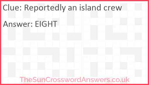 Reportedly an island crew is a crossword clue for which we have 1 possible answer and we have spotted 5 times in our database. This crossword clue was last seen on 25 July 2024 in The Sun Cryptic Crossword puzzle!