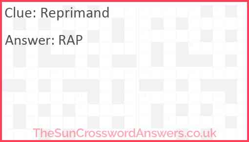 Reprimand is a crossword clue for which we have 6 possible answer and we have spotted 25 times in our database. This crossword clue was last seen on 01 April 2025 in The Sun Coffee Time Crossword puzzle!