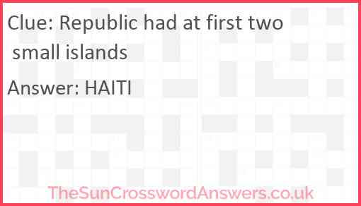 Republic had at first two small islands is a crossword clue for which we have 1 possible answer and we have spotted 2 times in our database. This crossword clue was last seen on 23 October 2023 in The Sun Cryptic Crossword puzzle!