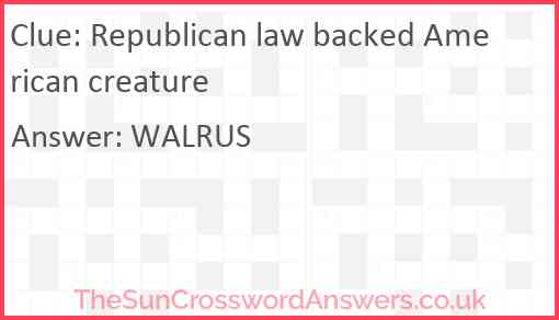 Republican law backed American creature is a crossword clue for which we have 1 possible answer and we have spotted 2 times in our database. This crossword clue was last seen on 15 November 2022 in The Sun Cryptic Crossword puzzle!