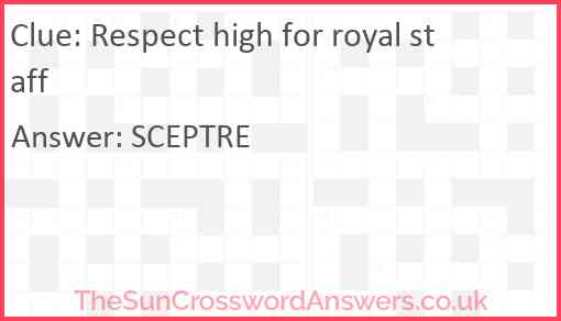 Respect high for royal staff is a crossword clue for which we have 1 possible answer and we have spotted 2 times in our database. This crossword clue was last seen on 30 September 2024 in The Sun Cryptic Crossword puzzle!