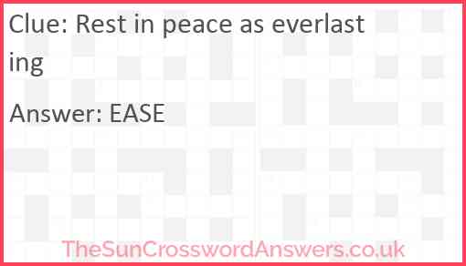 Rest in peace as everlasting is a crossword clue for which we have 1 possible answer and we have spotted 3 times in our database. This crossword clue was last seen on 10 December 2023 in The Sun Cryptic Crossword puzzle!