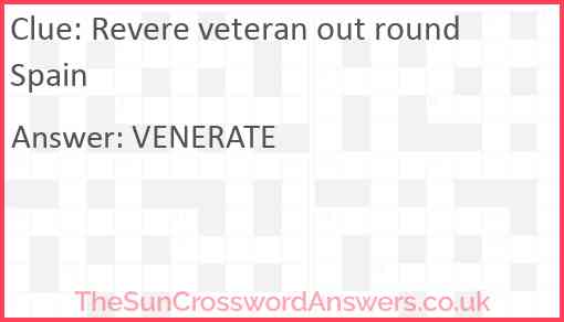 Revere veteran out round Spain is a crossword clue for which we have 1 possible answer and we have spotted 1 times in our database. This crossword clue was last seen on 07 April 2024 in The Sun Cryptic Crossword puzzle!