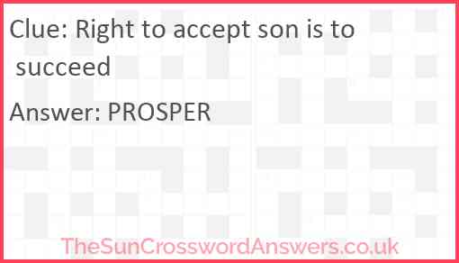 Right to accept son is to succeed is a crossword clue for which we have 1 possible answer and we have spotted 2 times in our database. This crossword clue was last seen on 12 March 2023 in The Sun Cryptic Crossword puzzle!