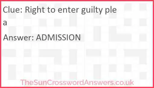 Right to enter guilty plea? is a crossword clue for which we have 1 possible answer and we have spotted 4 times in our database. This crossword clue was last seen on 08 January 2025 in The Sun Cryptic Crossword puzzle!