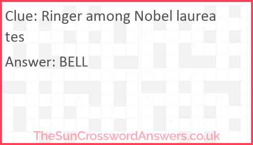 Ringer among Nobel laureates is a crossword clue for which we have 1 possible answer and we have spotted 2 times in our database. This crossword clue was last seen on 01 August 2023 in The Sun Cryptic Crossword puzzle!