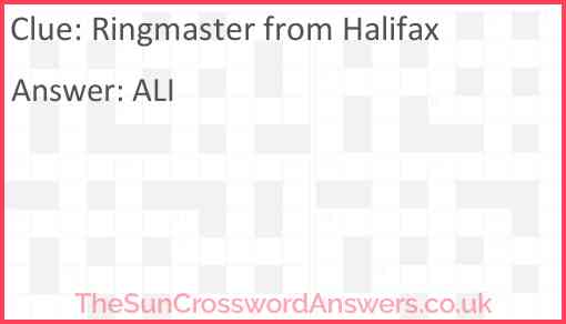 Ringmaster from Halifax? is a crossword clue for which we have 1 possible answer and we have spotted 3 times in our database. This crossword clue was last seen on 15 December 2024 in The Sun Cryptic Crossword puzzle!