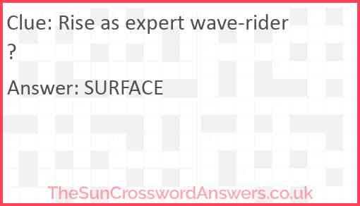 Rise as expert wave-rider? is a crossword clue for which we have 1 possible answer and we have spotted 2 times in our database. This crossword clue was last seen on 20 February 2024 in The Sun Cryptic Crossword puzzle!