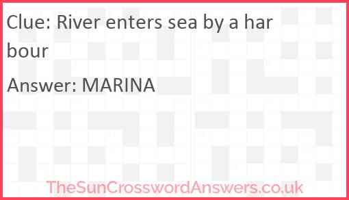 River enters sea by a harbour is a crossword clue for which we have 1 possible answer and we have spotted 3 times in our database. This crossword clue was last seen on 06 September 2022 in The Sun Cryptic Crossword puzzle!