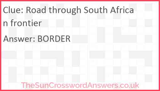 Road through South African frontier is a crossword clue for which we have 1 possible answer and we have spotted 1 times in our database. This crossword clue was last seen on 10 January 2025 in The Sun Cryptic Crossword puzzle!