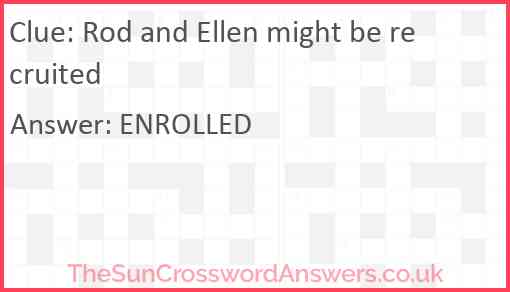 Rod and Ellen might be recruited is a crossword clue for which we have 1 possible answer and we have spotted 3 times in our database. This crossword clue was last seen on 03 August 2025 in The Sun Cryptic Crossword puzzle!