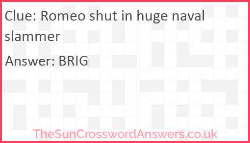 Romeo shut in huge naval slammer is a crossword clue for which we have 1 possible answer and we have spotted 2 times in our database. This crossword clue was last seen on 08 February 2022 in The Sun Cryptic Crossword puzzle!