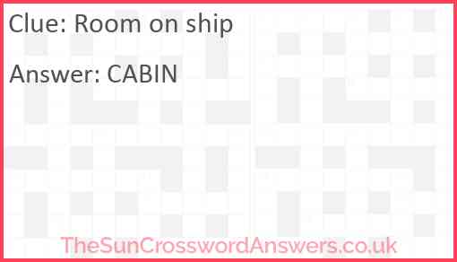 Room on ship is a crossword clue for which we have 1 possible answer and we have spotted 8 times in our database. This crossword clue was last seen on 02 April 2025 in The Sun Coffee Time Crossword puzzle!