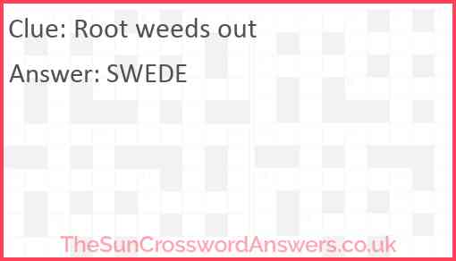 Root weeds out is a crossword clue for which we have 1 possible answer and we have spotted 2 times in our database. This crossword clue was last seen on 22 August 2024 in The Sun Cryptic Crossword puzzle!