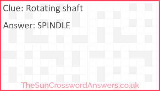 Rotating shaft is a crossword clue for which we have 1 possible answer and we have spotted 4 times in our database. This crossword clue was last seen on 19 March 2024 in The Sun Coffee Time Crossword puzzle!