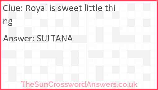 Royal is sweet little thing is a crossword clue for which we have 1 possible answer and we have spotted 1 times in our database. This crossword clue was last seen on 09 December 2024 in The Sun Cryptic Crossword puzzle!