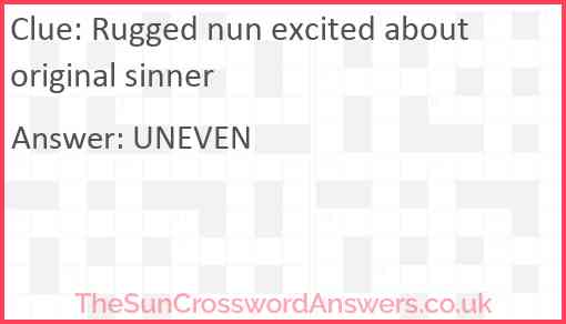 Rugged nun excited about original sinner is a crossword clue for which we have 1 possible answer and we have spotted 1 times in our database. This crossword clue was last seen on 01 June 2022 in The Sun Cryptic Crossword puzzle!