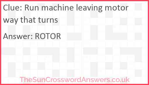 Run machine leaving motorway that turns is a crossword clue for which we have 1 possible answer and we have spotted 1 times in our database. This crossword clue was last seen on 23 October 2023 in The Sun Cryptic Crossword puzzle!
