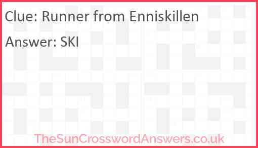 Runner from Enniskillen is a crossword clue for which we have 1 possible answer and we have spotted 3 times in our database. This crossword clue was last seen on 02 February 2025 in The Sun Cryptic Crossword puzzle!