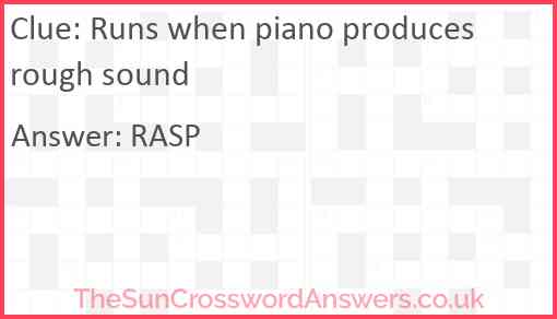 Runs when piano produces rough sound is a crossword clue for which we have 1 possible answer and we have spotted 3 times in our database. This crossword clue was last seen on 19 January 2024 in The Sun Cryptic Crossword puzzle!