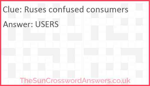 Ruses confused consumers is a crossword clue for which we have 1 possible answer and we have spotted 3 times in our database. This crossword clue was last seen on 27 June 2023 in The Sun Cryptic Crossword puzzle!