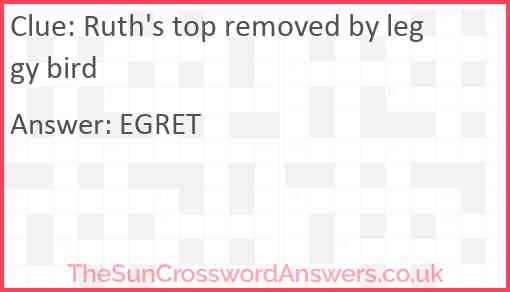 Ruth's top removed by leggy bird is a crossword clue for which we have 1 possible answer and we have spotted 2 times in our database. This crossword clue was last seen on 03 December 2024 in The Sun Cryptic Crossword puzzle!