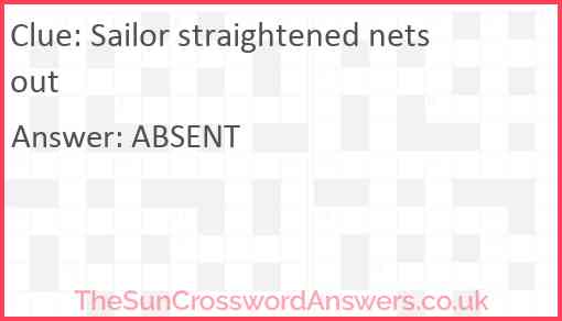 Sailor straightened nets out is a crossword clue for which we have 1 possible answer and we have spotted 3 times in our database. This crossword clue was last seen on 22 January 2025 in The Sun Cryptic Crossword puzzle!