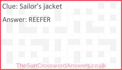 Sailor's jacket is a crossword clue for which we have 1 possible answer and we have spotted 3 times in our database. This crossword clue was last seen on 13 April 2022 in The Sun Coffee Time Crossword puzzle!