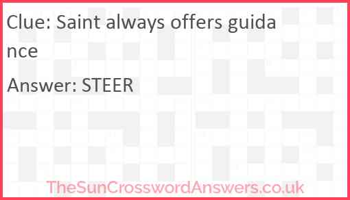 Saint always offers guidance is a crossword clue for which we have 1 possible answer and we have spotted 2 times in our database. This crossword clue was last seen on 01 February 2024 in The Sun Cryptic Crossword puzzle!